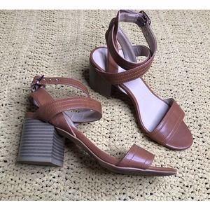 Open toe chunky heeled sandals with a buckle ankle strap! Excellent condition with only flaw shown in last picture. Minor Knick in back of one of the heels. Bundle for great discounts and I ship same day!