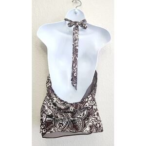 Apt 9 Brown White Floral Halter Backless Top XL Lightweight Lined Soft Flowy