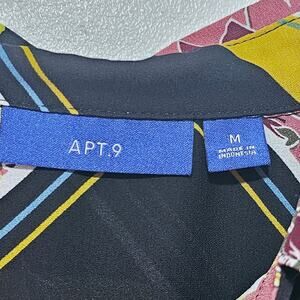 Apt. 9 Button-Up Blouse Women's Size M Abstract Floral Pockets Business Casual