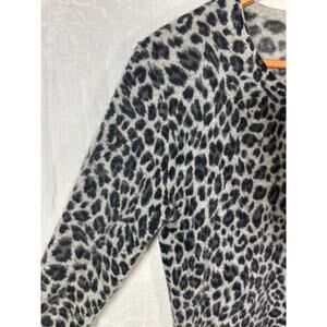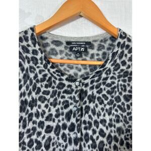 Apt 9 Cardigan Sweater Med Gray Animal Print 100% Cashmere Y2K Cheetah Leopard