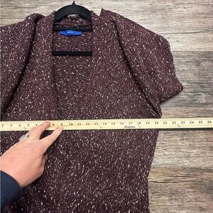 Embrace warmth and style with this Apt. 9 cardigan, featuring a textured chunky knit in a rich brown and red hue. This open-front design offers a cozy, oversized fit perfect for layering during cooler months. Its long sleeves and hip-length cut make it a versatile addition to any wardrobe.