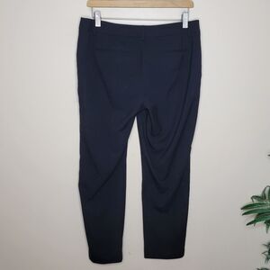 Classic black dress pants with a slim straight leg. Slightly shorter length that hits at ankle.