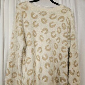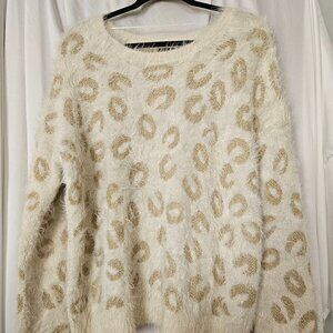 Apt. 9 Cream and Gold Eyelash Knit Leopard Print Sweater XL NWOT
