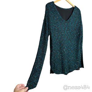 Apt. 9 Dark Green/Teal Sparkle V-Neck Sweater XL