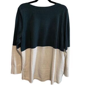 Apt. 9- Dark Green & Cream Color Block Sweater with Pointelle Knit, Size XXL