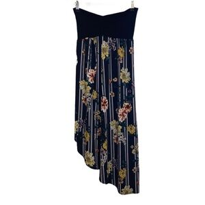 Apt. 9 Dress Black Strapless Orange & Yellow Floral Wrap Asymmetric Dress
