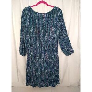 Apt. 9 Dress XL Blue w/colorful dots long sleeve jersey Elastic Waist top lined
