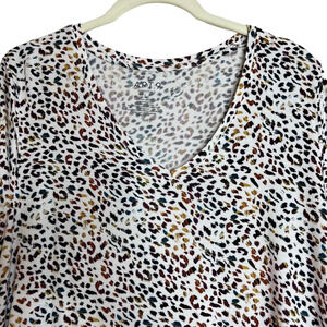 Apt 9 Essentials Women's Long Sleeve Longline Tee Size Large Multicolor Animal Print Rayon Spandex