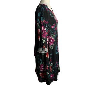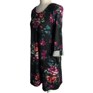Apt 9 Floral Flannel Sweater Dress S Black Roll Tab Sleeve Pull Over Round Neck