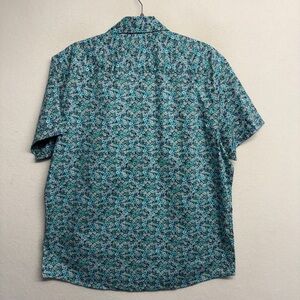 Apt 9 Floral Short Sleeve Button Down Shirt L Blue Green Collared
