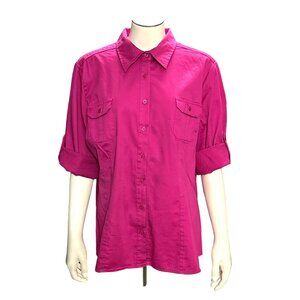 Apt 9 Fuchsia Purple Button Front Dressy Cotton Shirt Front Pockets Size XL