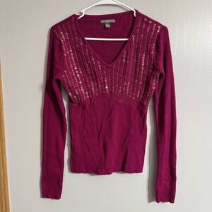 Apt. 9 Fuchsia Sequin V-Neck Blouse Size Small