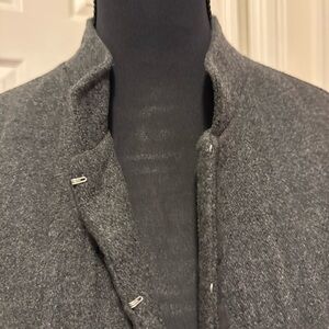 This Apt. 9 blazer in a sophisticated gray hue features a textured fabric with subtle vertical striping, offering a classic and professional look. Perfect for business settings, its tailored design ensures a polished appearance. The blazer's wool-blend material adds a touch of luxury and comfort to your wardrobe.