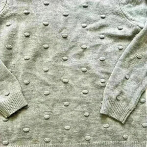 Soft gray with 3D polka dot details on front. Crewneck. 'No holes, stains or tears. Only worn a few times. Always hung dry.