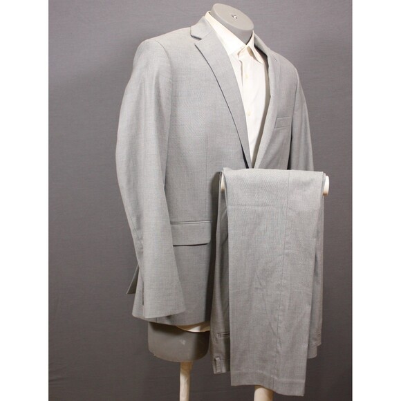 Apt 9 Gray Polyester Blend 2 Pc Suit Premier Flex Slim Fit 44R Flat Fronts 34" W