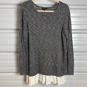 Apt. 9 Gray and White Crew Neck Sweater with Lace Hem