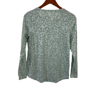 Apt 9 Green Shiny Mint Green Leopard Blouse Top Long Sleeve Size XS Animal Print
