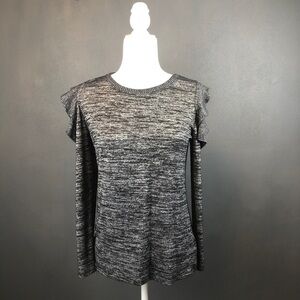 Apt. 9 Grey Ruffle Open Shoulder Long Sleeve Top S