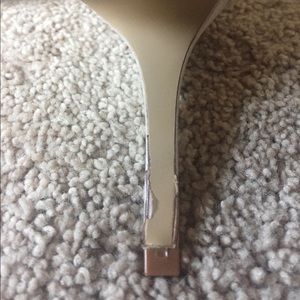 Worn one time heels with rhinestones over the toes. Got so many compliments while wearing them but they no longer fit.