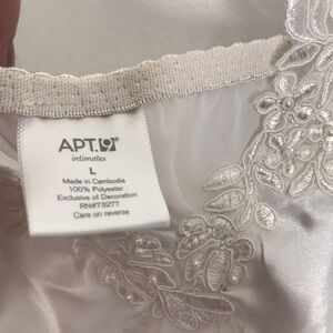 Apt. 9 Intimates Babydoll Slip. Size large. Color is a shade of white. Never been worn. No rips, tears or stains. Has floral and faux pearl detailing on the bust.