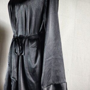 Apt. 9 Intimates Black Satin Feel Poly Long Sleeve Contrast Cuff Robe Size M....Beautiful Silky Robe....So Hollywood you may Never want to Take it off........Like Brand New....