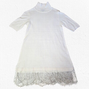 Apt 9 Ivory White Turtleneck Lace Hem Half Sleeve Tunic Sweater Small Petite