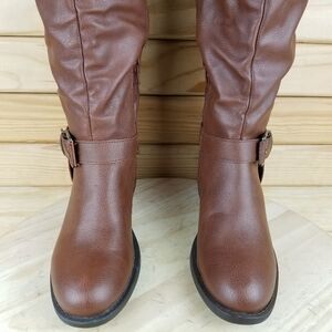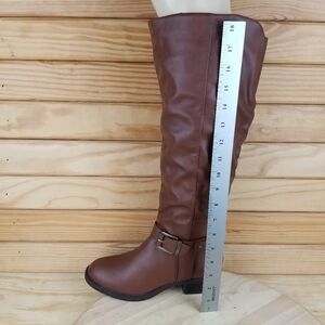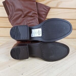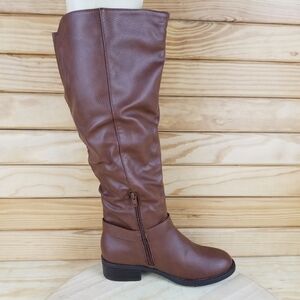Apt 9 Knee High IRENE Fashion Boots Brown Cognac Faux Leather 1/4 Zip Women's 7W