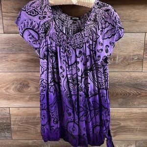 Apt 9 Ladies Shirred Blouse, Size Small, Purple and Black, Floral and Paisley
