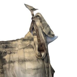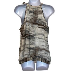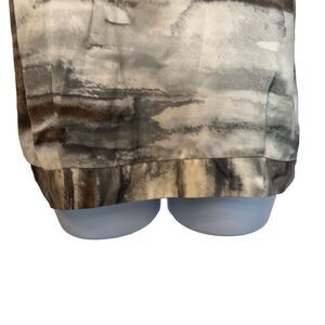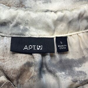 Apt 9 EUC Gray Brown Watercolor Print Tie Neck Banded Hem Blouse Sz L
