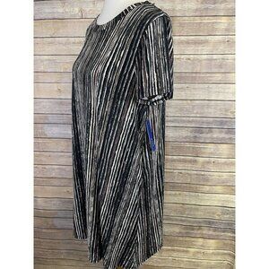 Apt 9 Large NWT Dress Striped Stretchy Liquid Knit Textured Black Brown Career