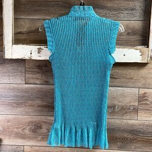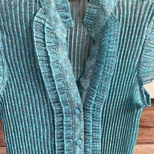 Apt 9 Ldies Pleated Short Sleeve Button Up Blouse, Size Medium, Teal and Black