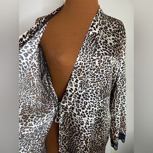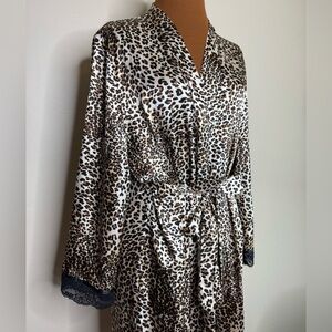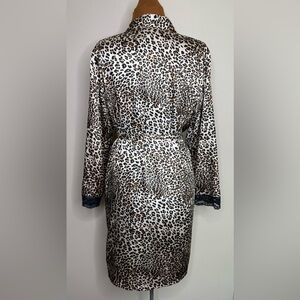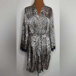 Apt 9 Leopard Print Satin Robe Black Lace Trim Size Large