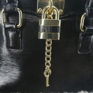 Apt. 9 Lock and Key Accent Black Vinyl Zip Up Purse Handbag