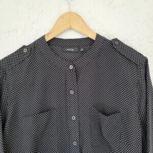 Apt 9 Long Sleeve Button Down Pin Dot Blouse Black White Womens Size M Polyester