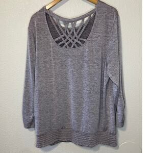 Apt. 9 Long Sleeve Cross Strap Low Back Smocked Waist Top XL Heathered Gray Pink