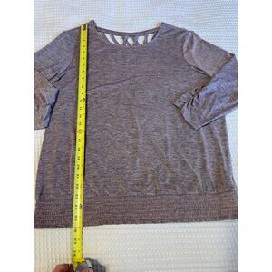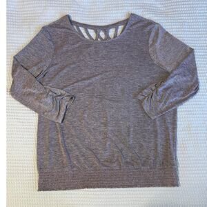 Apt. 9 Long Sleeve Cross Strap Low Back Smocked Waist Top XL Heathered Gray Pink