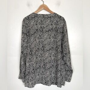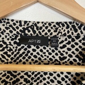 Apt. 9 Long Sleeves Top 3X Black & White Animal Print Chiffon V-Neck Button Down