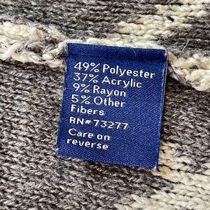 49% polyester, 37% acrylic, 9% rayon, 5% other fibers