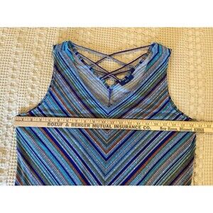 Apt. 9 Maxi Dress Sz XL Sleeveless Criss Cross Back Striped Blue Orange Stretchy
