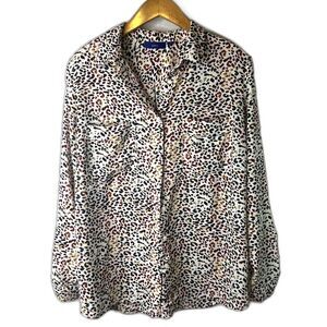 Apt 9 Maximalist Animal Print Spatter Blouse Leopard Roll Tab Sleeves Size Large