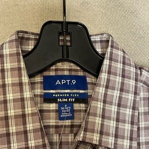 🆕 Apt. 9 Men’s Size Small Slim Fit Purple Plaid Button Up Dress Shirt Fast Ship