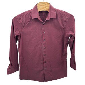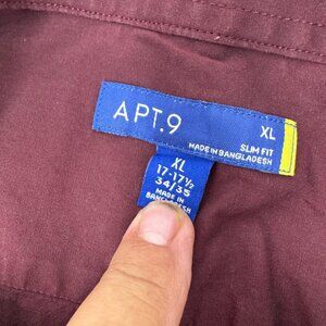 This Apt. 9 shirt offers a stylish and professional look. With its slim fit design, it provides a modern and tailored appearance suitable for business settings. The rich color adds sophistication, while the long sleeves and button-up style ensure versatility for various occasions.