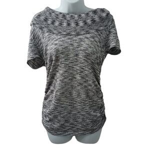 Apt 9 Metallic Ruche Short Sleeve Mottled Grey & White Cowl Neck Top Si…