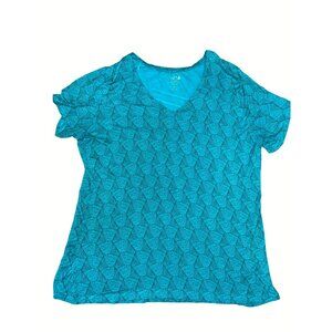 Apt 9 Modern Essential V Neck Short Sleeve Top Teal Geometric Pattern Rayon XLG