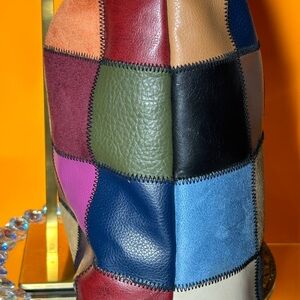 Vibrant patchwork design. Soft leather texture. Spacious interior. Perfect for everyday use. Interior: 1 zipper pocket and 2 slip pockets. Black sateen lining. The Strap drop is approx. 11” NWOT No call-outs.