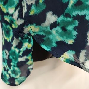Apt. 9 Navy Blue & Teal Sheer 3/4 Sleeves Blouse Size L