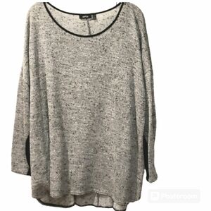Really cute Apt 9 Nubby textured tunic with colors include light gray background with black and white nubs and black trim around neck and underneath the arms. This high low crew neck top is 28" p2p and 28" to 31" . It's light weight and perfect!