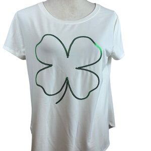 Apt. 9 Off-White top with green Sequin Shamrock size large