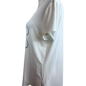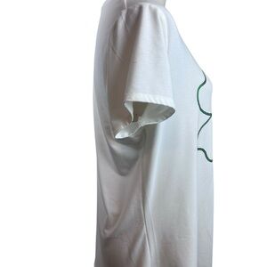Apt 9 top. Off white with green sequin clover/shamrock. Short sleeves Excellent condition. Polyester, rayon and spandex. . Size large.