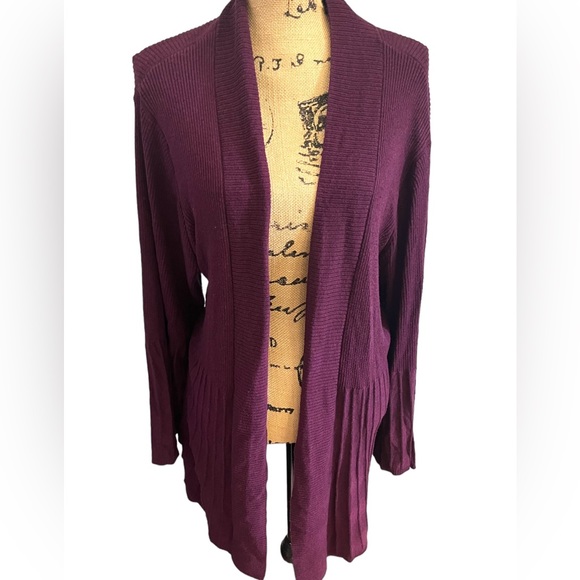 Apt. 9 Open Cardigan Sweater 1X Purple Ridged Tight Knit Long Sleeved